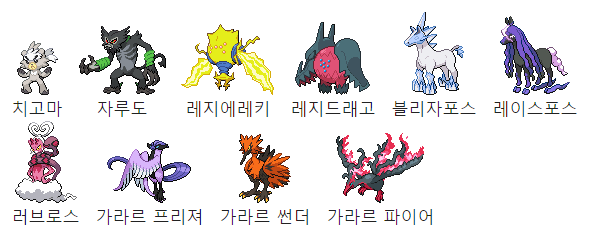 전설 포켓몬 리스트